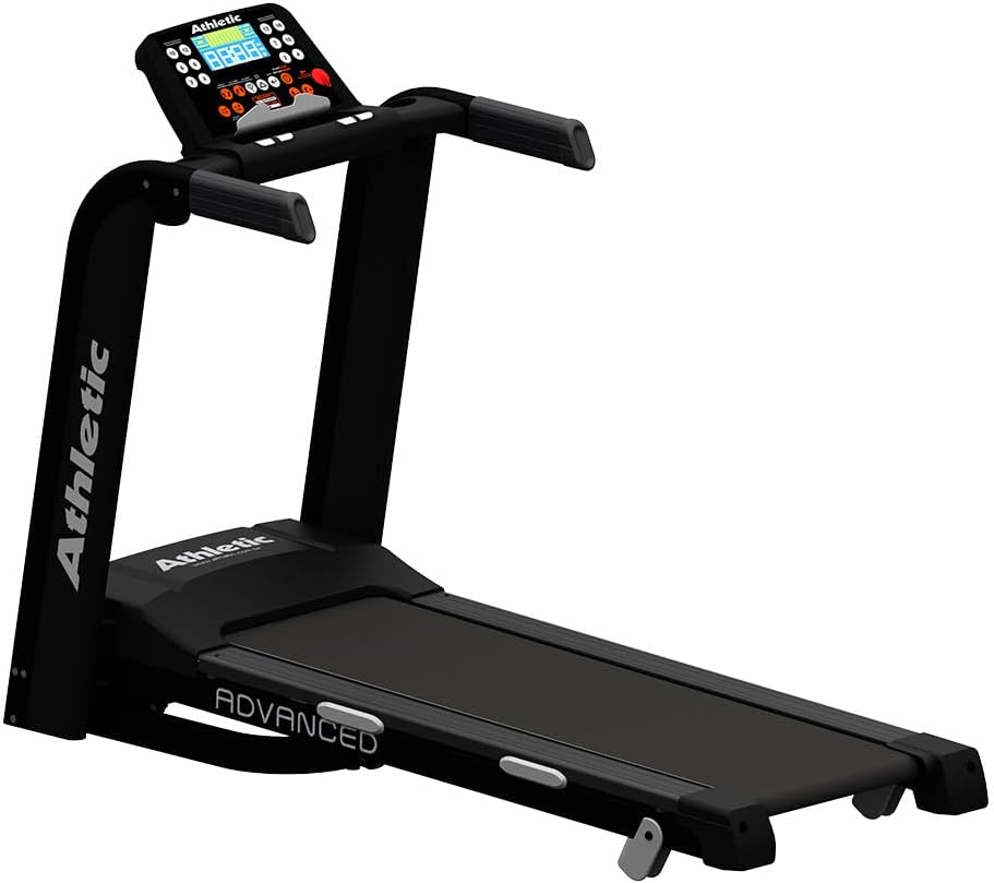 A Athletic Advanced é uma opção robusta para treinos intensos, com motor de 2.5 HP e velocidade de até 16 km/h. Suporta 130 kg, com lona de 44 cm e inclinação eletrônica. Oferece 25 programas pré-definidos e 4 amortecedores para proteção articular.