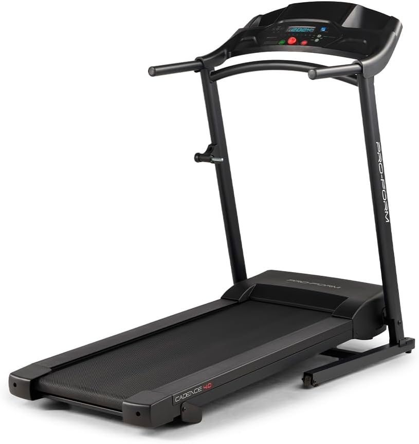 A ProForm Cadence 4.0 oferece excelente custo-benefício com motor de 2.0 HP e velocidade de até 16 km/h. Sua lona de 51 x 140 cm acomoda usuários de até 136 kg, e o design dobrável é ideal para espaços pequenos.